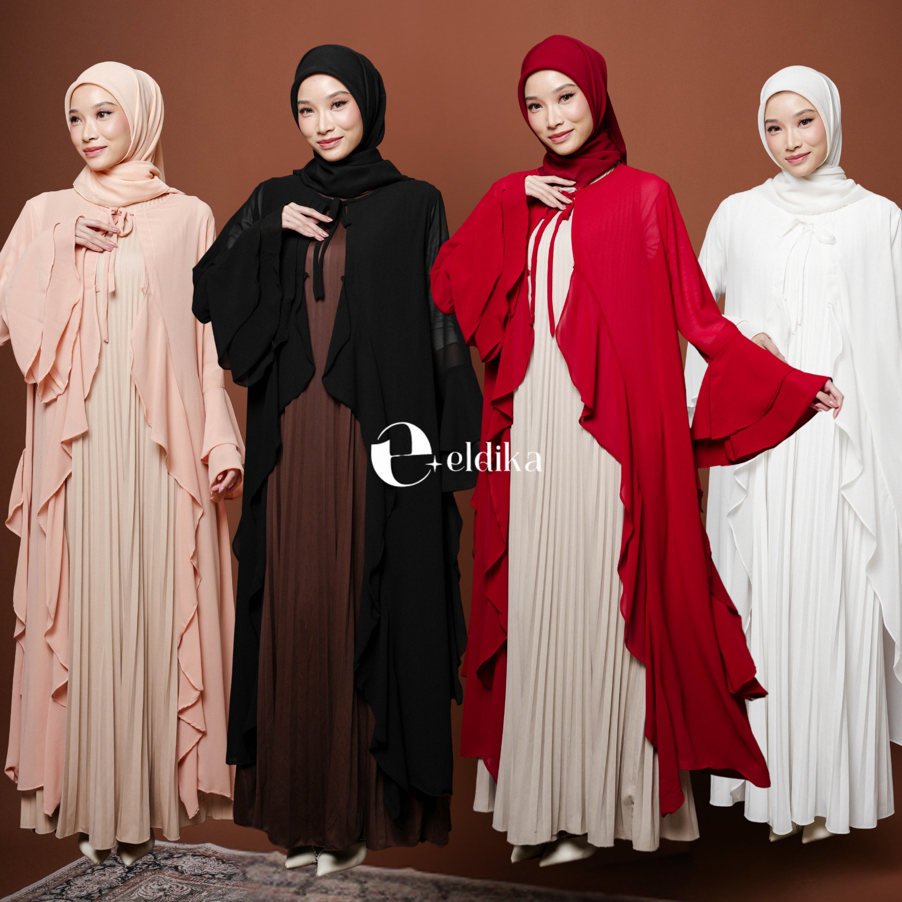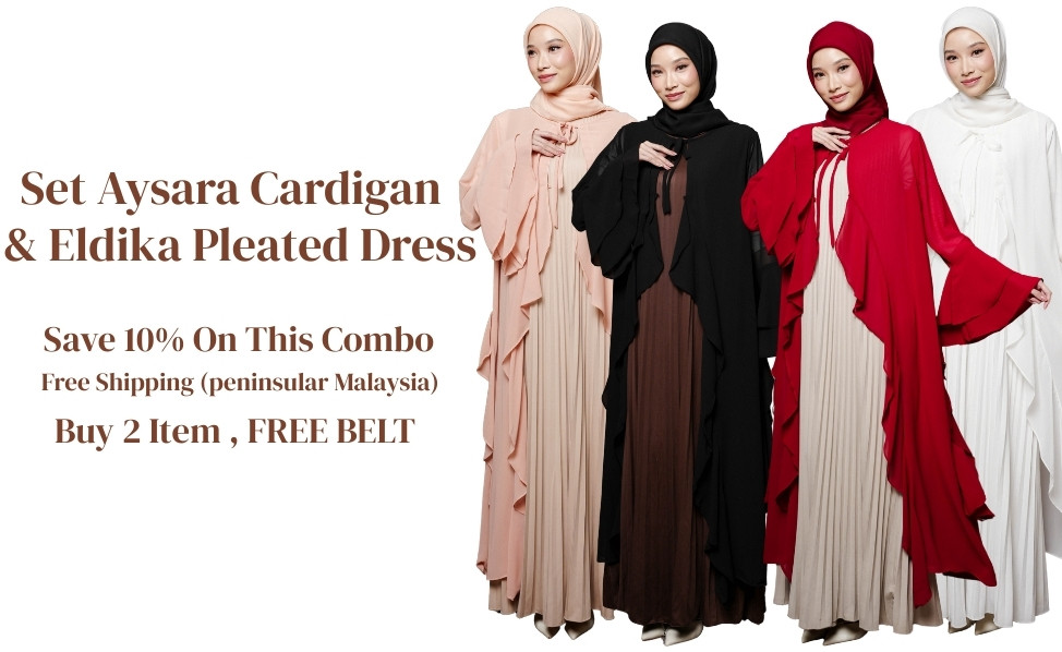 COMBO SET Aysara Cardigan DEEP ROSE + Inner Pleated Dress MAROON